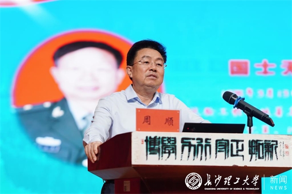 在熟悉的《马兰谣》中,周顺带领师生走进马兰花盛开的国家核试验场地——新疆马兰,从“马兰花”“马兰人”“马兰魂”三个单元,图文并茂地对“干惊天动地事 做隐姓埋名人”的马兰精神做了深刻、细致的解读。他深情追忆了自愿隐姓埋名数十载、为国家事业无私奉献的英雄们,列举了张蕴钰、程开甲、林俊德等“马兰人”的动人故事,深刻阐释了马兰人报效祖国的担当气魄,以身许国的价值追求。周顺指出,马兰精神是老一辈创业者矢志报国、自强不息的智慧结晶,是追梦强国、铸盾砺剑的力量凝聚。他勉励青年学生要爱国、奉献、团结、奋斗,用青春之力报效伟大祖国,实现强国梦想。