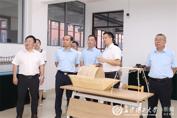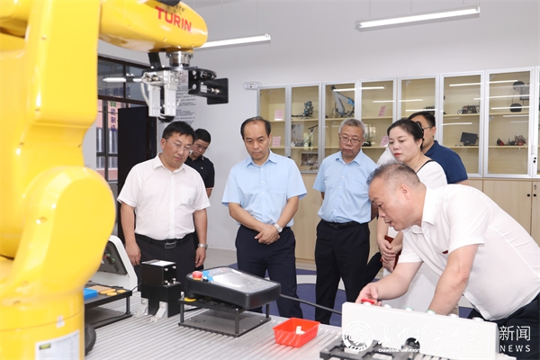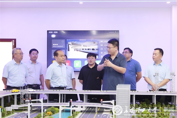 在智慧交通实验室,舒行钢一行体验乘坐了交通学院科研团队参与研发的无人驾驶“智慧巴士”,详细听取了实验室在轨道交通领域的技术创新、人才团队建设、科研成果转化等方面的情况汇报。在土木工程科创中心,舒行钢一行饶有兴致地观看了学生团队搭建的各式模型,并为长理学子在科创竞赛中的亮眼成绩点赞。在电工电子创新训练中心、机器人创新训练中心、电力机器人实验室等地,舒行钢详细询问了各训练中心的人才培养模式与途径,实地观摩了多种电力机器人的工作流程,深度了解其功能原理与实际应用情况。
