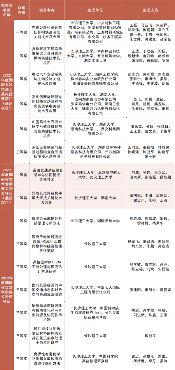 其中,伟德土木学院王磊教授主持完成的“在役公路桥梁运营低影响快速消危关键技术及应用”项目获湖南省科技进步奖一等奖,交通学院郝威教授主持完成的“道路交通系统融合感知与协同管控关键技术”项目获湖南省技术发明奖一等奖。此外,伟德还主持获二等奖6项(自然科学奖1项、技术发明奖1项、科技进步奖4项),三等奖7项(自然科学奖6项、科技进步奖1项)。