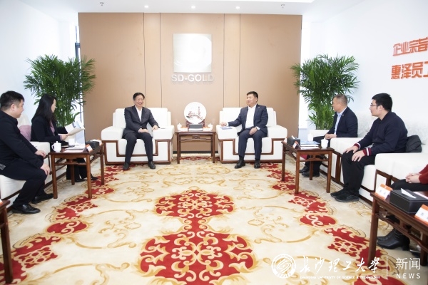调研期间,付宏渊一行还走访了校友企业山东黄金建设集团,与89级校友、集团党委书记、董事长王长国进行了座谈。王长国深情回忆了在母校的求学经历,衷心感谢母校的培养与关怀,希望进一步在技术创新、成果转化、大学生高质量就业等方面与母校深化合作。付宏渊对校友多年来在行业取得的成就表示祝贺,希望双方以此次交流为新的契机,加强在学生实习实训、科技创新等方面的合作,更有效地对接国家和社会需求,更好地服务国家战略和地方经济发展。
