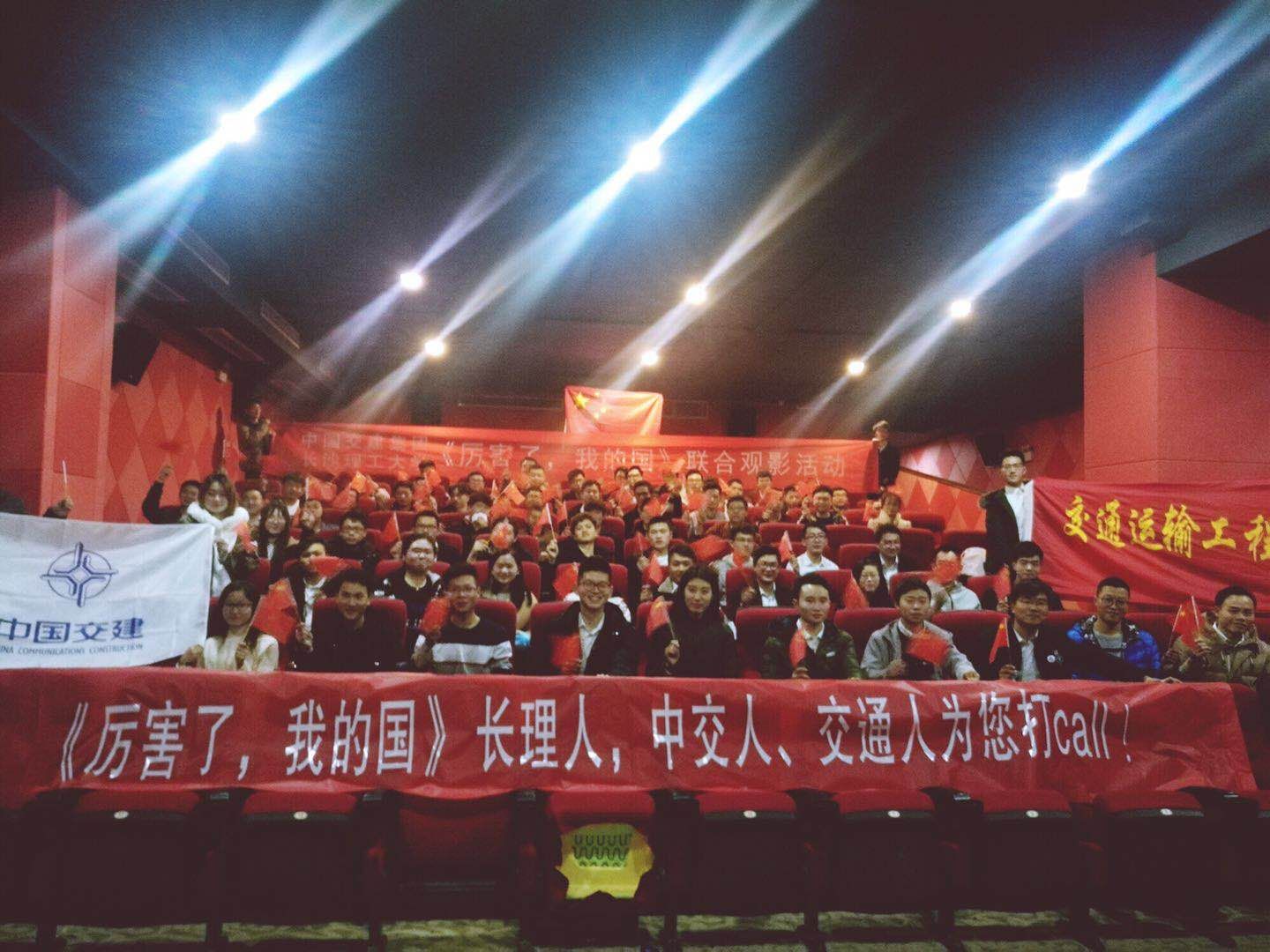 近期由中央电视台、中国电影股份有限公司联合出品的《厉害了,我的国》火爆全国影院。3月5日,在新学期开学第一天,交通运输工程学院师生140余名师生来到潇湘佳星国际影城集体观影,为伟大祖国打Call,为中国交建点赞,为长沙理工喝彩!此次观影活动由交通学院与中国交通建设股份有限公司人力资源部、公司团委共同主办,交通学院党委副书记田上,教师代表以及学院今年签约中国交建的全体交通青年共同参加了观影活动。