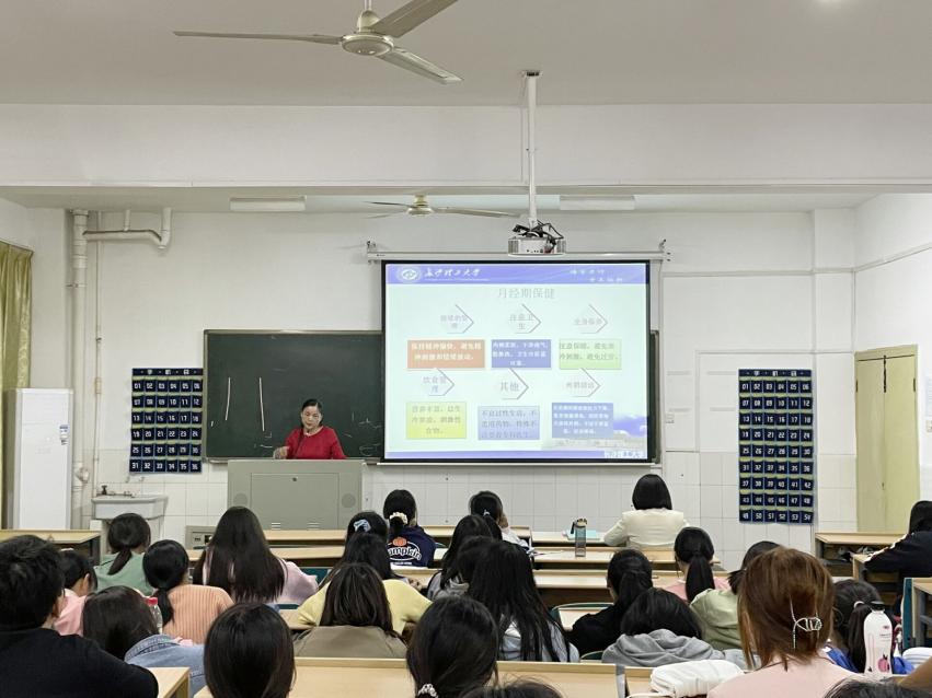 10月10日晚,汽机学院邀请校医院雷鹂医生在金盆岭校区16教313教室主讲性健康知识。学院全体2021级女生听取讲座,讲座由辅导员彭琼英主持。