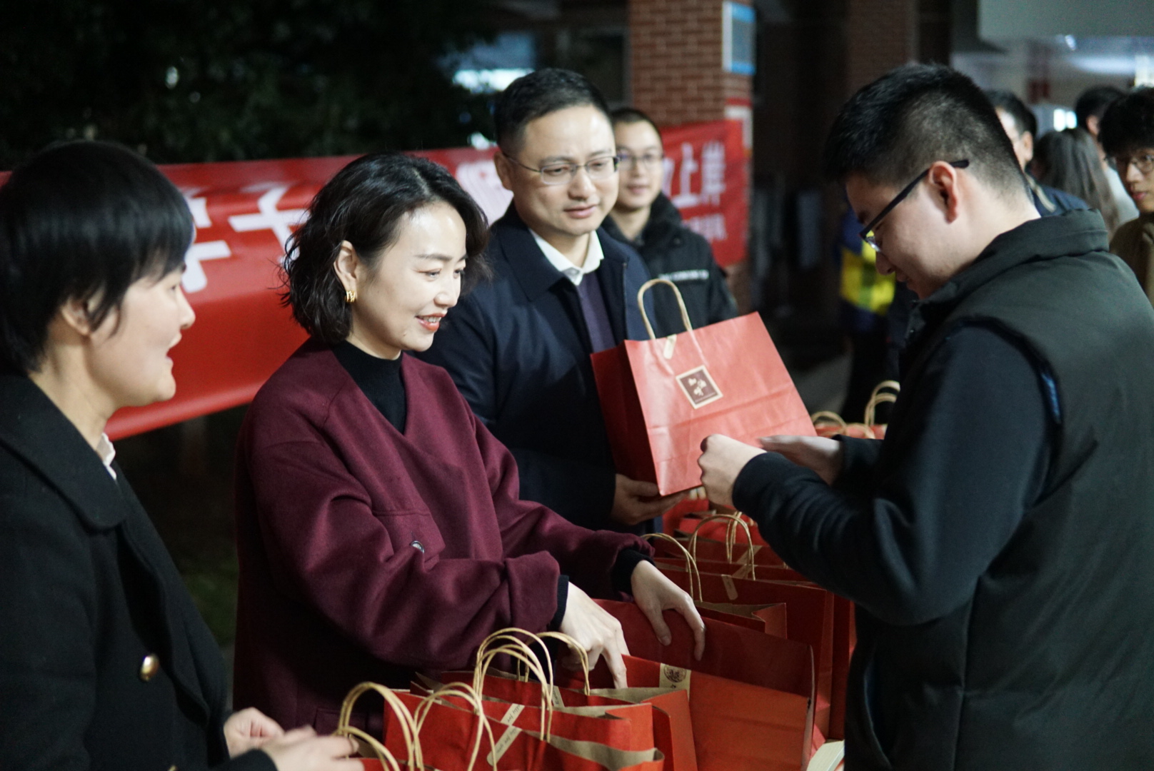 12月21日,正值冬至节气,水利与学院开展为2022届考研学子送祝福活动,学院党委书记喻玲娜、院长陈杰、副书记银波、副院长邓斌、党委委员唐栋、专业老师、班主任、全体辅导员以及工作人员将300余份饱含学院祝福的考研加油盲盒大礼包和热气腾腾的水饺送到考研学子的手中,深深祝愿他们成为考研上岸的佼佼者。