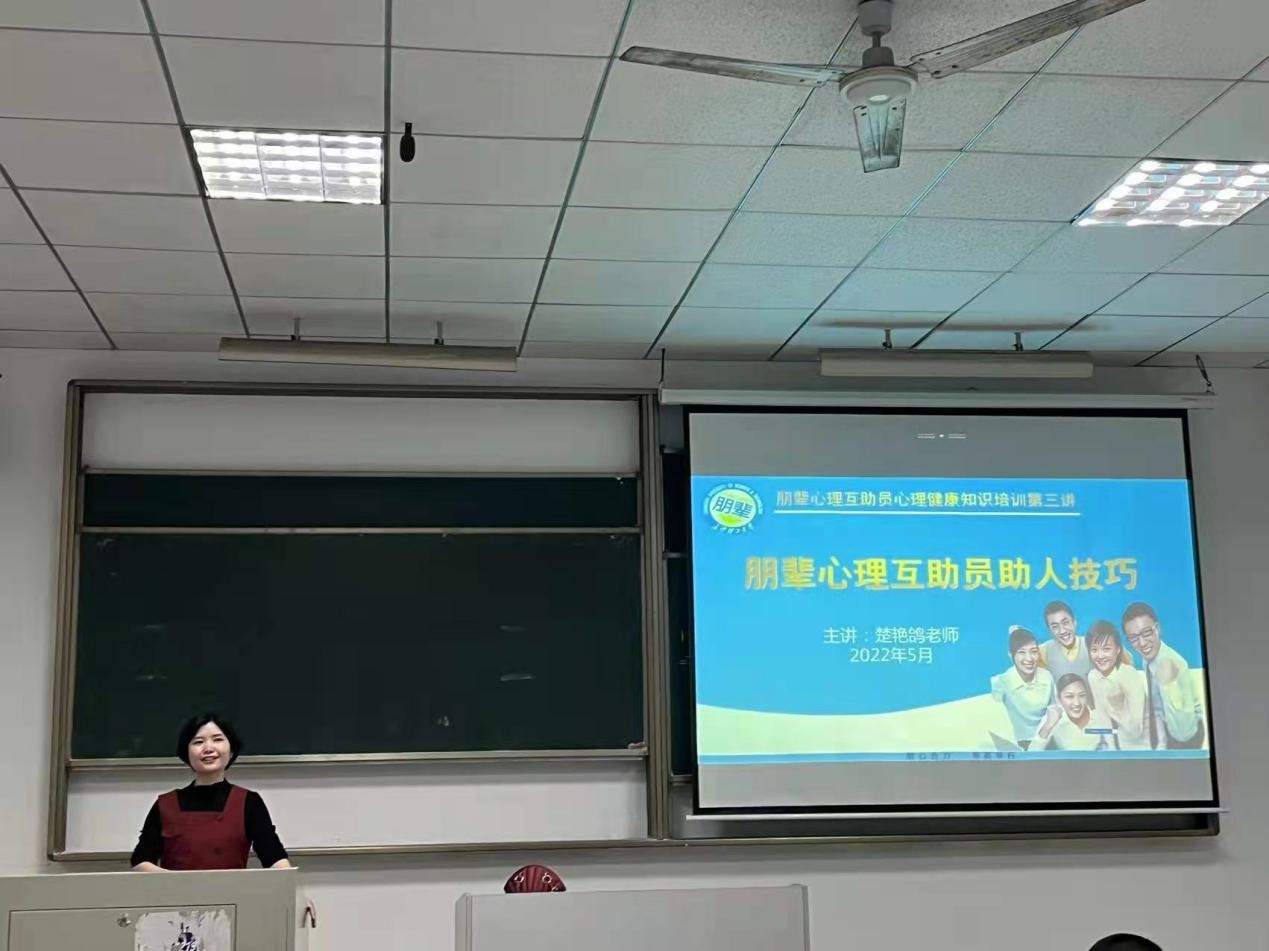 5月23日晚,马克思主义学院心理朋辈互助员第三次培训在金盆岭校区6教108举行,培训会由文新学院心理辅导员楚艳鸽老师主讲,由马克思主义学院、法学院、文新学院及化工学院的朋辈互助员参加。
