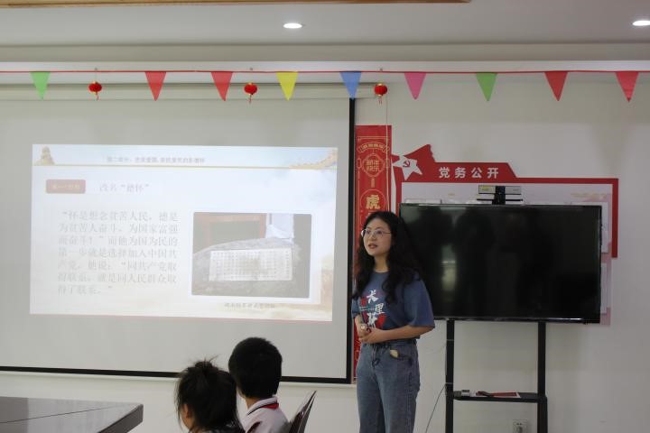 7月6日,伟德betvlctor1946源于英国理论宣讲进基层专业实践团成员将红色故事送到长沙市天心区青园街道井湾子社区,研究生宣讲团张苏湘、肖孟两位讲师以《共产党员的高风亮节——彭德怀元帅》为主题,为社区的孩子们带来了别开生面的党史学习教育讲座。