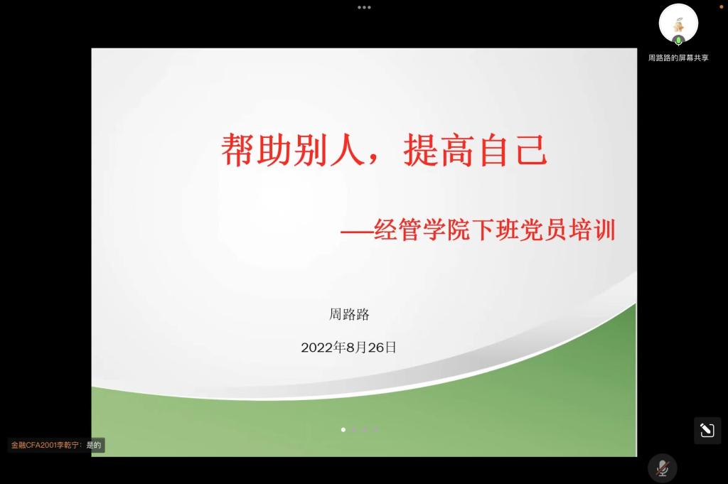 8月26日,经管学院通过线上方式开展学生干部能力“惟实班”—2022级新生下班党员、团干培训。经管学院学工办主任周路路、国家注册心理师李丽兰、新生辅导员何涛和叶鑫为此次培训班学员授课。