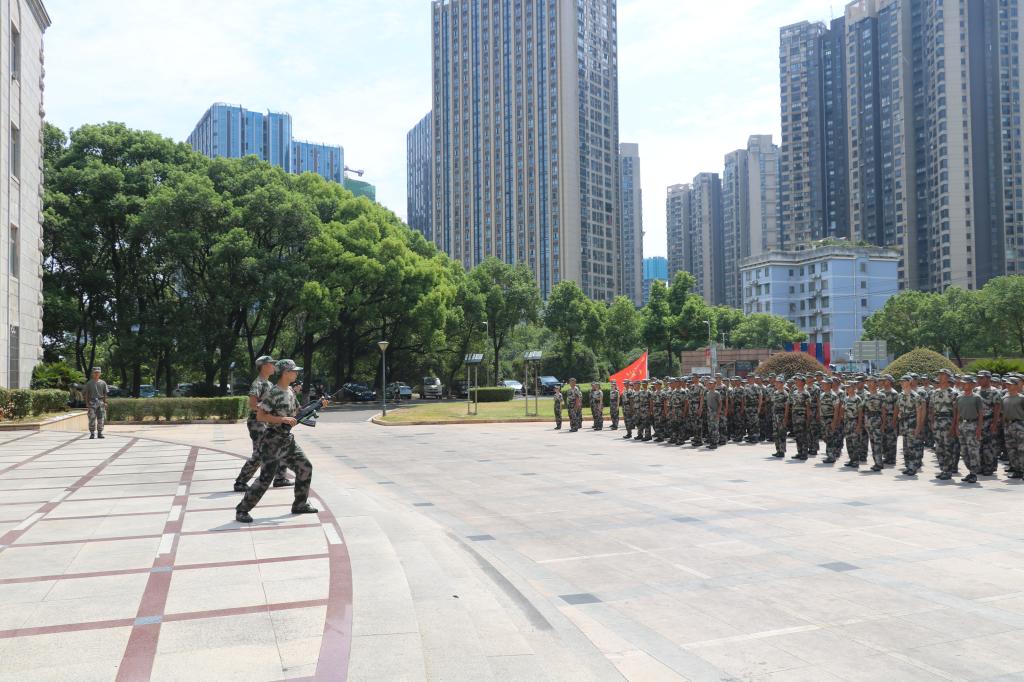 烈日炎炎,225名新生在军训教官的悉心指导下进行队列训练。“青春向上!强国有我!请党放心!”现场口号嘹亮,整齐划一,方队军姿挺拔、斗志昂扬,参训学生精神饱满,以最佳的姿态接受学院领导的检阅。现场,五名女生持“匕首”演练“匕首操”,女生们英姿飒爽,嘹亮的口号势破云霄,整齐划一的动作孔武有力。两名男生手持步枪演练“刺杀操”,一招一式气势磅礴,大开大合间尽显强军之风与男儿血性。院领导对军训教官的辛劳付出给予高度赞扬,对新生的训练成果和精神风貌给予充分肯定。