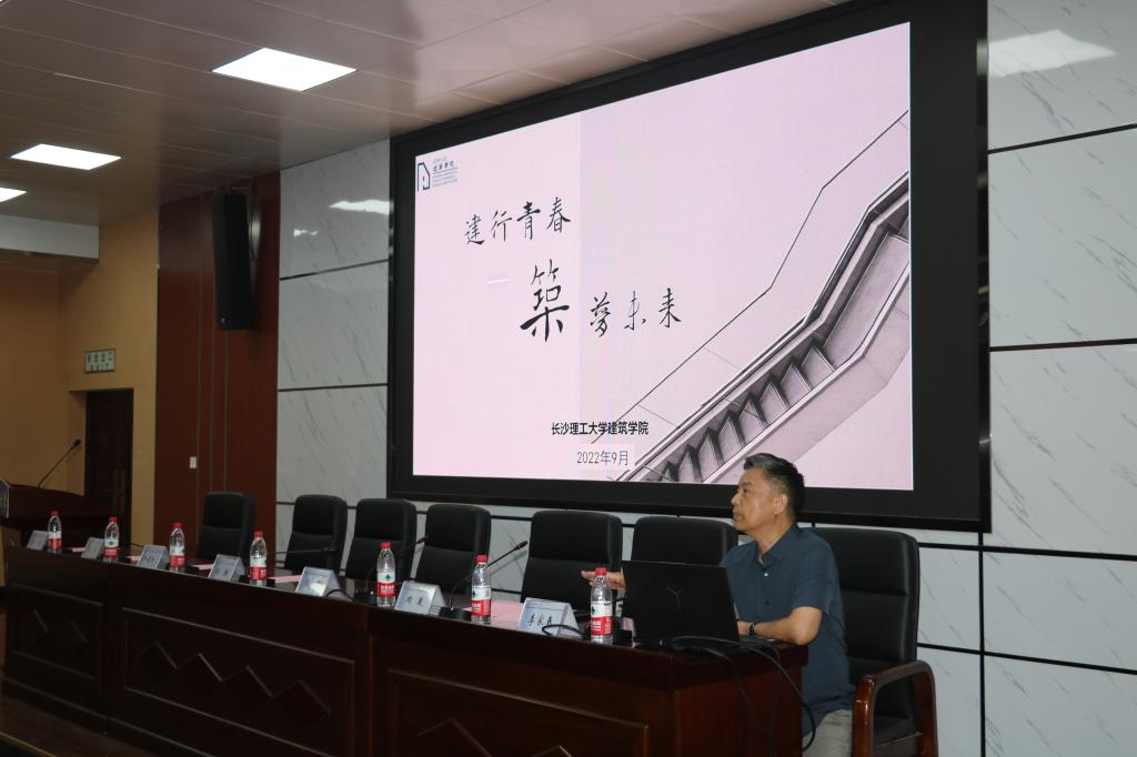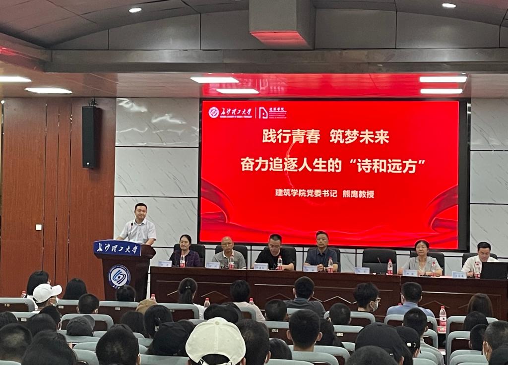 杨瑛为全体新生做了题为“建行青春,筑梦未来”的院长第一课。杨瑛首先从是什么、学什么、干什么、有什么四个方面详细介绍了建筑学、城乡规划和风景园林三个专业的课程设置与人才培养体系,毕业生的毕业去向,学院的发展成就、师资力量和学习环境,以及优秀校友情况。随后,他以苏仙岭景观瞭望台设计为例,与大家分享了如何从中华优秀传统文化中挖掘创作元素,融入现代设计艺术创作,把人文学科与人文科学完美结合,精彩的分享引发同学阵阵掌声。最后,他叮嘱同学们多读书、勤思考、多锻炼,立大志、明大德、成大才、担大任,在专业道路上实现人生理想,成为堪当民族复兴重任的新时代长理人。