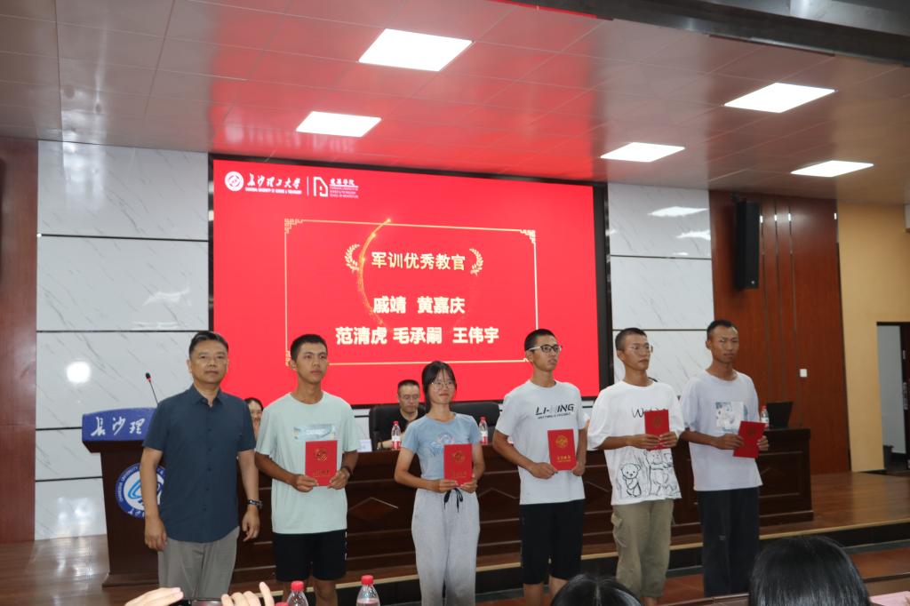 随后,杨瑛向优秀教官分发荣誉证书,熊鹰、许建和向军训先进个人分发荣誉证书,周晨向军训内务卫生优秀寝室代表分发荣誉证书,受表彰代表合影留念。