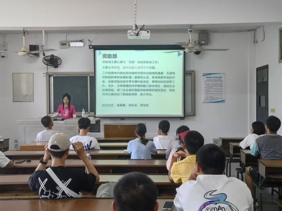 9月17日,学院2022级生活委员交流培训会在金盆岭校区12教205召开,本次会议由院团委学生会资助管理部成员组织开展,2022级生活委员与会,其余三个年级生活委员线上参会。