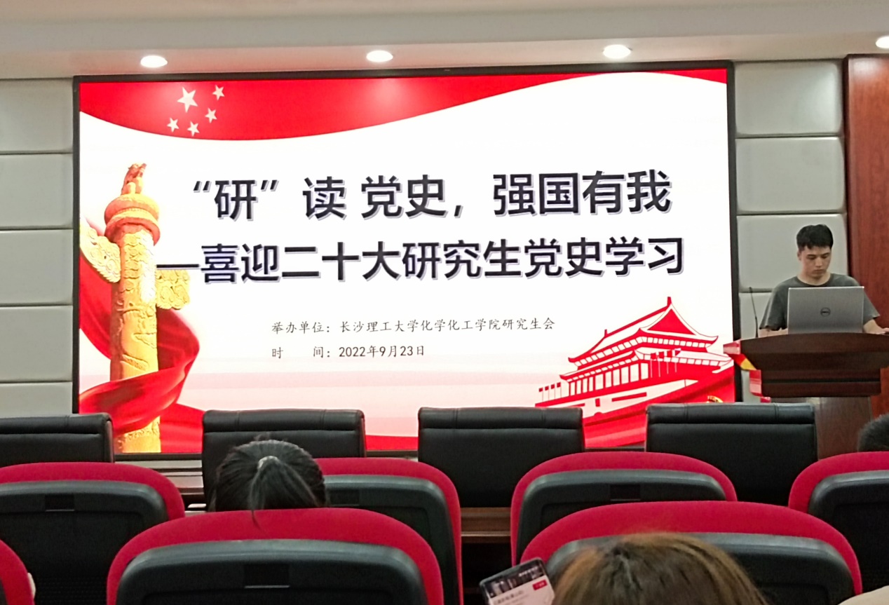为加强研究生的党史学习教育,迎接党的二十大的胜利召开,化学化工学院于9月23日晚举办了“研”读党史,强国有我——研究生党史学习系列活动第五期,本次活动通过观看《决胜时刻》学习中国共产党的精神谱系,营造喜迎二十大的浓厚氛围。