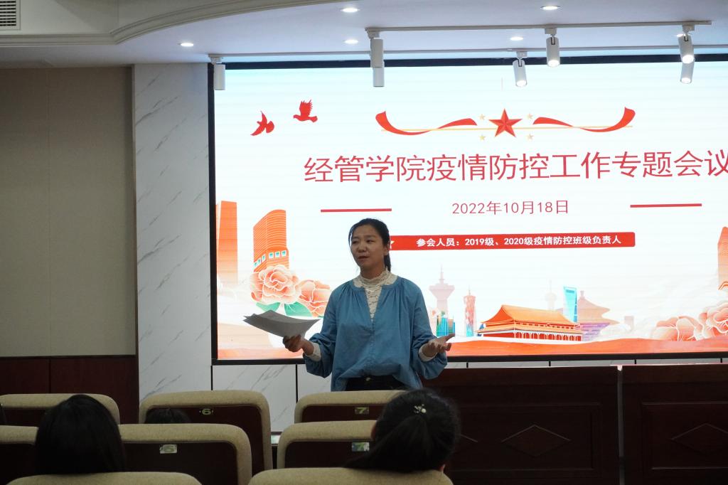 10月18日,经管学院在文科楼D207再召开19级、20级学生疫情防控专题会议。党委副书记唐青、年级辅导员、各班级疫情防控负责人到会,会议由学工办主任周路路主持。