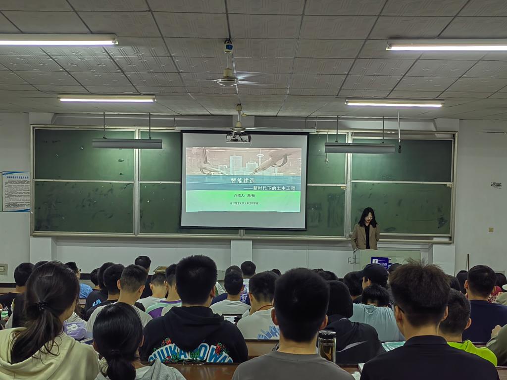 11月9日,土木工程学院在12教500开展2022级本科生通识教育讲座。学院青年教师高畅博士应邀主讲。2022级辅导员李小军老师和2022级智能建造专业全体学生参加讲座,2022级年级组副主席赵奕博主持活动。