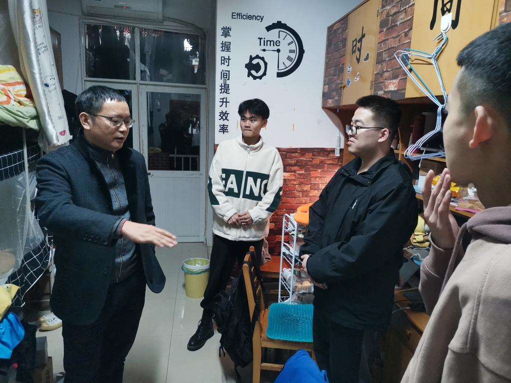 天气乍凉,温度骤降, 11月29日晚,物电学院党委书记张国强走访慰问了学生宿舍,学院年级辅导员、班主任一并参加。
