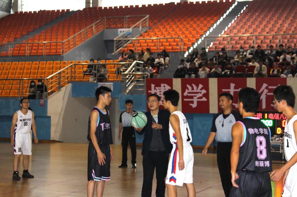 物电学院党委书记张国强来到现场为比赛开球,他希望参赛队员友谊第一,比赛第二;注意安全,保护自己;打出水平,赛出特色。