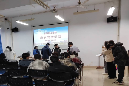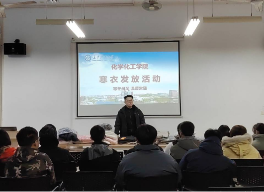 12月1日下午,化学化工学院在云塘校区工三B210举办了一年一度新生寒衣发放活动,在凛冬来临之际为同学们发放寒衣,送上学校与学院的关心关怀,传递爱与温暖。本次活动由学院资助辅导员王彪老师主持,勤工助学部成员及全体受助同学参与此次寒衣发放活动。