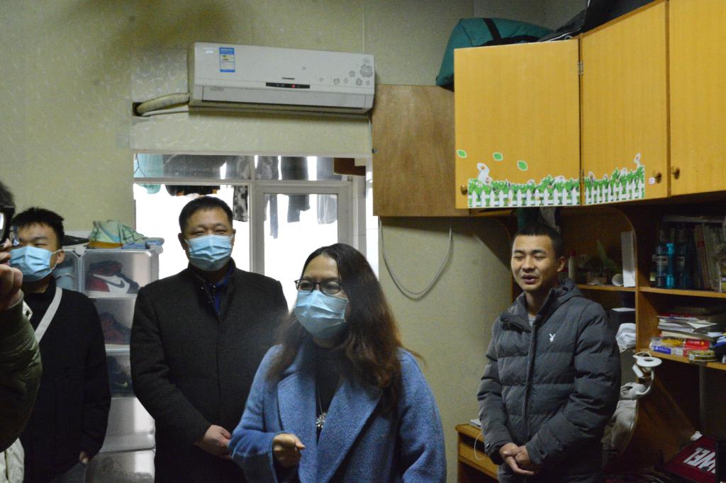 12月4日,电气与信息工程学院党委书记伍接朝、常务副院长杨洪明、党委副书记任艮丰、副院长王文和辅导员深入学生宿舍、了解学生需求。