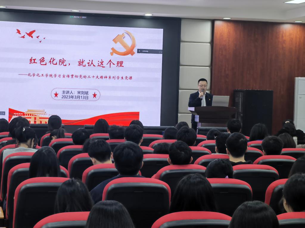 为全面学习宣传贯彻党的二十大精神,将党的二十大精神的学习成效转化为推动学院高质量发展的强大动力。3月14日晚,化学化工学院党委书记宋刘斌在工科三号楼A320会议室为学院全体学生党员开展以《如何理解教育、科技、人才是全面建设社会主义现代化国家的基础性、战略性支撑?》为主题的宣讲,学院共计136名党员通过“线下+线上”相结合的方式参加此次宣讲活动。