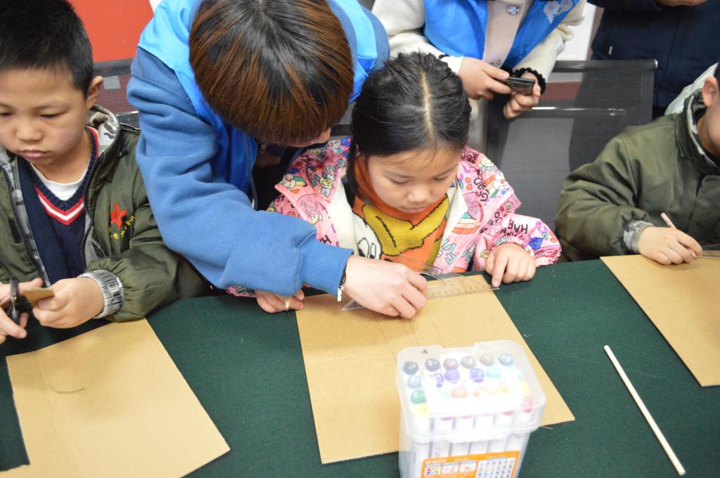 趣玩会的志愿者带着小朋友两两一组一起合作,用硬纸板制作出一只只竹蜻蜓,并用画笔装饰着自己亲手制作的竹蜻蜓。随着小朋友们相继制作完成,教室里充满了欢声笑语。小朋友们兴致勃勃地向大家展示了自己制作的竹蜻蜓,比谁的竹蜻蜓飞得更高。最后志愿者们还给每一位小朋友赠送了带来的小礼物。