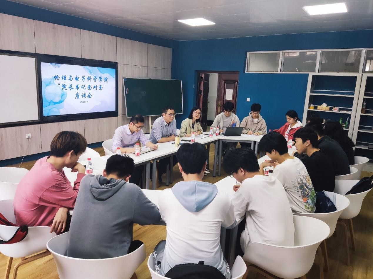 4月11日下午,物电学院“书记院长面对面”学生座谈会在云塘校区理科楼C509举行。物电学院党委书记张国强、副院长(主持工作)张卫兵、年级辅导员赵俊程参加了座谈会,学院党委副书记宋国宁主持会议,参会的有2021级学生代表和学生会生活权益部成员。