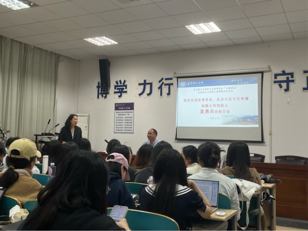 5月22日晚马克思主义学院在云塘校区文科楼C202举办第十五届研究生“云影讲坛”暨职业与人生大讲堂——读博就业分享会。本次活动由辅导员曾蓓老师主持,优秀学长、长沙小百文化传播有限公司创始人袁勇兵受邀主讲,马克思主义学院2022级全体研究生参加。