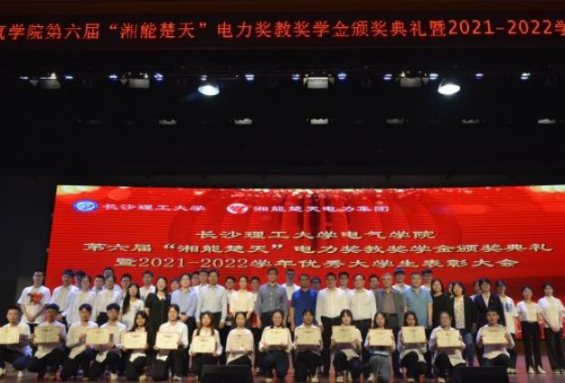 6月6日晚,电气与信息工程学院在金盆岭校区五教大会堂举行第六届“湘能楚天”电力奖教奖学金颁奖典礼暨2021-2022学年优秀学生表彰大会。湘能楚天电力集团董事长陈伟其、副总裁冯艳云、薪酬经理张立奇、品宣经理朱雷,伟德教务处副处长彭晖、学工部副部长陶传谱、校友中心副主任肖晖、研工部思政科科长吕倩出席,电气学院党政领导班子、师生代表一同参与。本次颁奖典礼由电气学院党委副书记陶双主持。