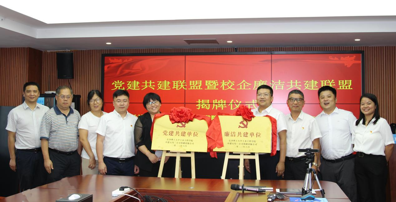 揭牌仪式上,首先李尚代表公司致欢迎辞,对前来参加此次活动的师生表示热烈欢迎。他全面介绍了中建五局三公司基础设施公司情况、“15335”价值党建工作、主题教育开展等相关情况。他表示校企党建联盟共建是加快建筑企业紧缺人才培养的有效途径。本次以党委结对共建为动力,深入推进基层党组织创建活动,提升党建整体水平,激发人才活力,为“校企共赢、人才共育”注入强大动力,推进校企合作取得新成效。接着,黄阿明全面介绍了学院教学科研、人才培养、主题教育等情况,她还提到目前学院发展的几项重点工作,并表示下一步要致力于联合共建,推动校企合作深度融合发展,为实现学院高质量发展而努力。随后,双方进行了党建共建联盟、廉洁共建联盟揭牌仪式及合影留念。