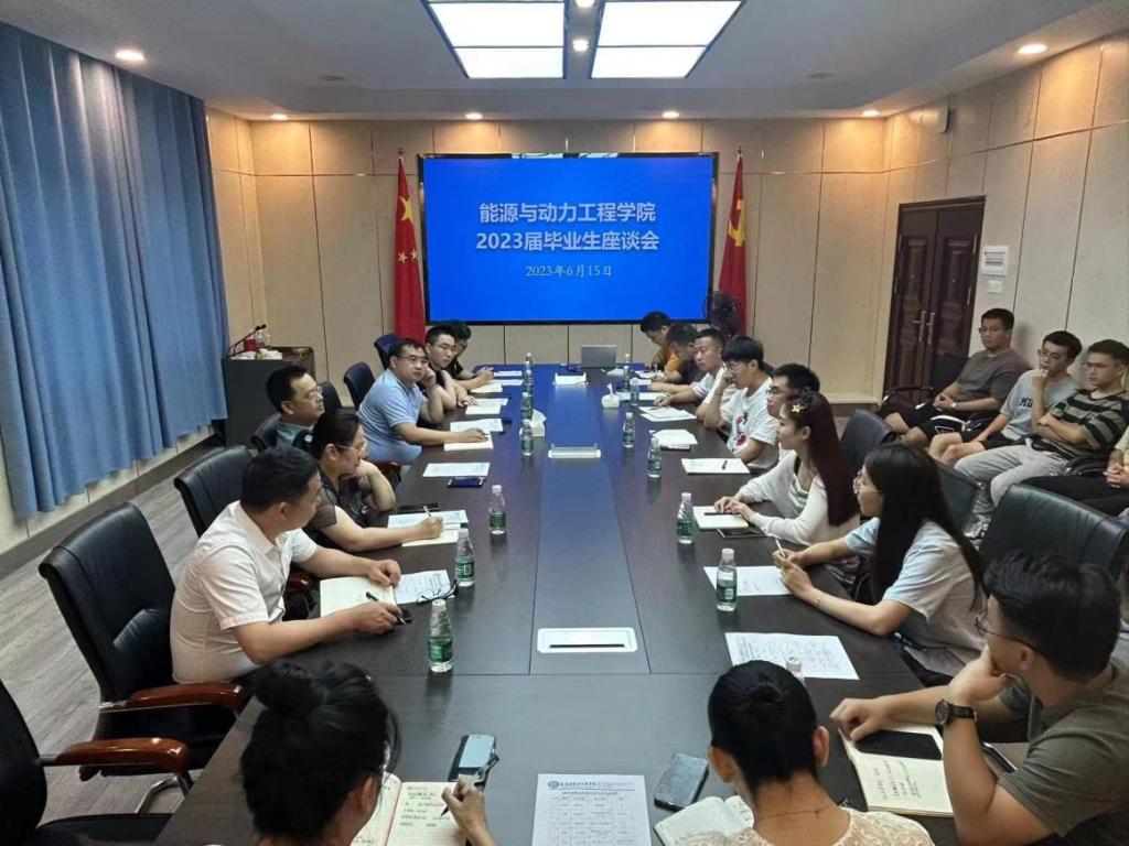 6月15日,能源与动力工程学院2023届毕业生代表座谈会在云塘校区新能源2栋511会议室举行。院党委书记成华、院长陈荐、院党委副书记张晓烽、副院长何建军、副院长田红出席,学工办全体辅导员以及本科、硕士毕业生代表参加,座谈会由张晓烽主持。