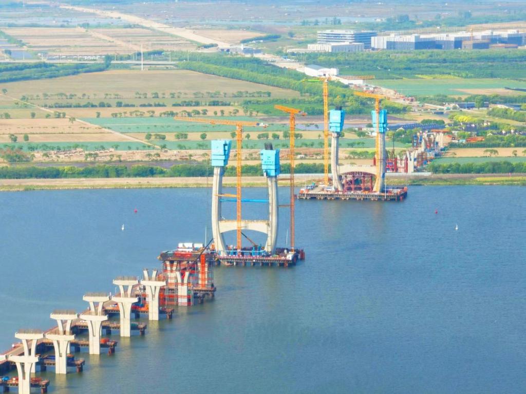 现场工作人员带领团队成员参观了曹娥江特大桥施工现场,并对其施工工艺以及施工流程进行介绍。该项目起点位于越东路与临海路交接处,采用水滴型桥塔、钢绞线斜拉索结构,在纵面上采用空间扇形布置。据现场工作人员介绍说:“由于曹娥江特大桥独特的钢混结构,大桥合龙需根据合龙时的温度、配重量进行确定。所以我们测量人员每隔2小时,对邻近合龙段已完成梁段的标高进行全面观测,结合合龙过程理论数据,最终确定合理配重量及合龙段的低温浇筑时间。”“施工过程中许多注意事项以及细节,都是我们在课堂上无法顾及的,测量员用精准的数据诠释工匠精神,对于我们来说是值得敬佩和学习的。”工管2101班苏雅婷在听完工作人员介绍后说道。