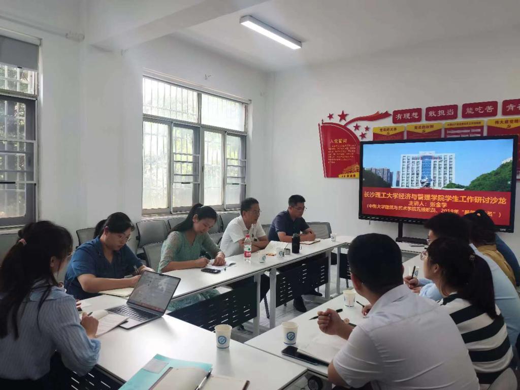 8月29日上午十点,经管学院在金盆岭校区办公大楼102召开新学期学生工作研讨沙龙,本期沙龙邀请了全国“最美辅导员”、中南大学建筑与艺术学院张金学老师主讲。经管学院党委副书记唐青及全体辅导员参加。