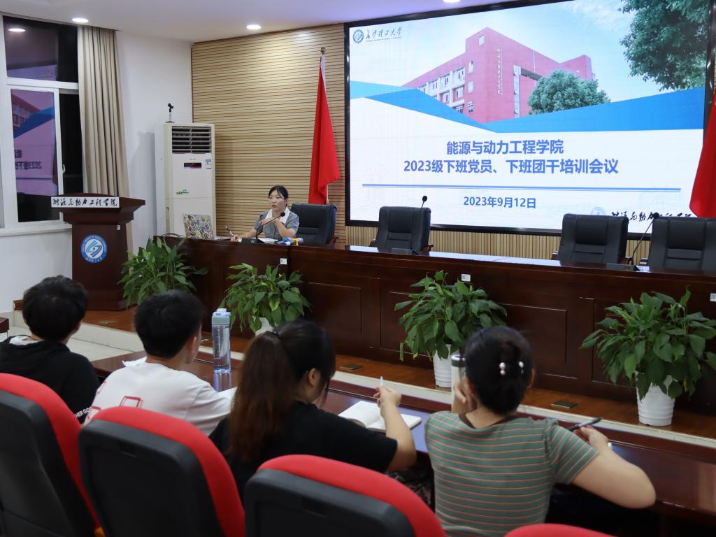 为做好2023级新生各项工作,确保新生顺利入学,9月12日晚上,能动学院召开2023级下班党员、下班团干培训会。会议由学院2023级新生辅导员陈颖主持,2023级下班党员、下班团干参加会议。