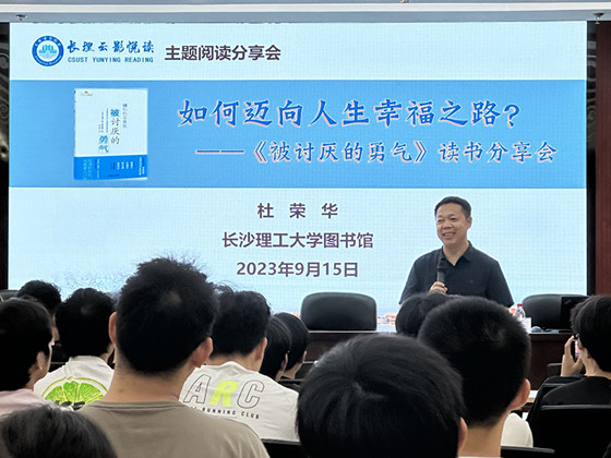 9月15日晚,图书馆与物电学院电信2207班联合举办了一场以“如何迈向人生幸福之路——《被讨厌的勇气》”为主题的“云影悦读”主题阅读分享会。此次分享会邀请到了图书馆馆长杜荣华教授担任主讲人。胡思宇同学担任主持。100余名师生参与了此次活动。