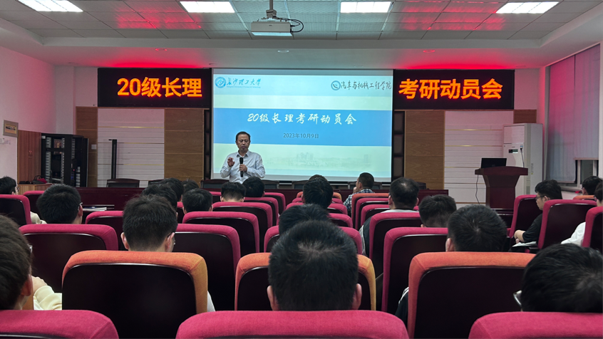 10月9日,汽车与机械工程学院举行2024届长理考研动员会。会议由学院副院长毛聪、汽车系主任伍文广老师以及80余名学生参与,年级辅导员陶蓝老师主持。