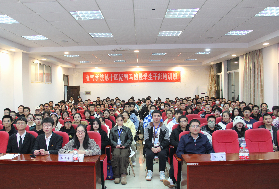 12月5日晚,电气学院于云塘校区工科一号楼B503进行第十四期青马班暨学生干部培训班开班仪式和第一次授课。学工部副部长陶传谱应邀出席作为第一课主讲人,电气学院党委副书记陶双,团委书记田孟萍、学生会主席团出席,第十四期青马班全体学员参加,本次培训会由自动化2301班曾栎容主持。