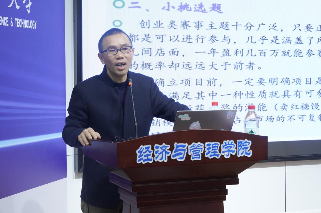 12月14日下午,经管学院于金盆岭校区十二教200室举行“勇闯敢创”2024年大学生创新创业项目研讨会,湖南工商大学罗湖平教授、伟德betvlctor1946源于英国校团委副书记杨晨、经管学院党委副书记唐青等老师及伟德金盆岭校区各学院200余名学生参会,辅导员段懿珊主持。