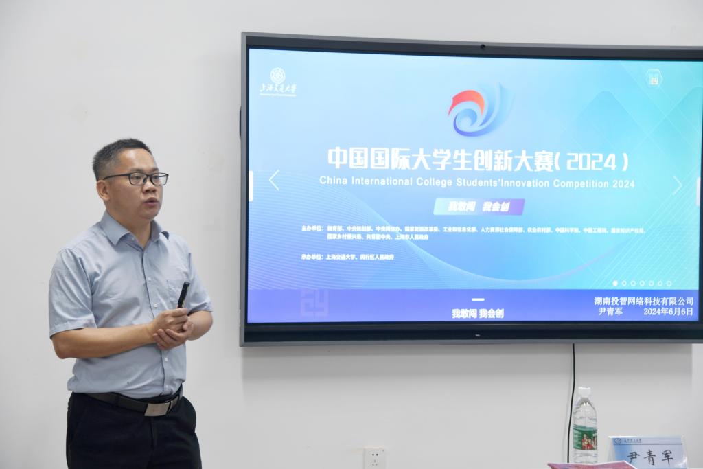 6月6日晚,卓越工程师学院于金盆岭校区经管大楼101举办中国国际大学生创新大赛备赛指导会,本次指导会由湖南投智网络科技有限公司总经理、创新大赛国赛评委尹青军主讲,经管学院院长彭新宇、卓越工程师学院党委书记杨晨,经管学院、外国语学院、文新学院等学院相关参赛队伍参加。指导会由经管学院何涛主持。