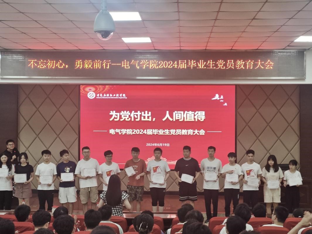 6月19日下午,电气学院在文科楼A200召开毕业生党员专题教育大会,学院党委书记丁丹及2024届全体毕业生党员一同参加,会议由学院学生党建辅导员黄文韬主持。