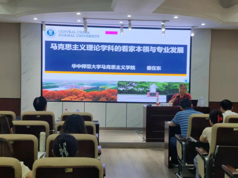 6月15日下午,教育部高校马克思主义理论类专业教指委委员、华中师范大学马克思主义学院原院长、博士生导师秦在东教授应邀来到马克思主义学院,在伟德云塘校区文科楼D207报告厅主讲了题为《马克思主义理论学科的看家本领与专业发展》的学术讲座。本次讲座由我院张明海院长主持,湖南文理学院党委副书记李红革教授,文贵全副院长、王威峰副教授、陈方芳博士等学院教师和研究生近100人参加讲座。