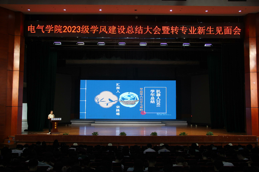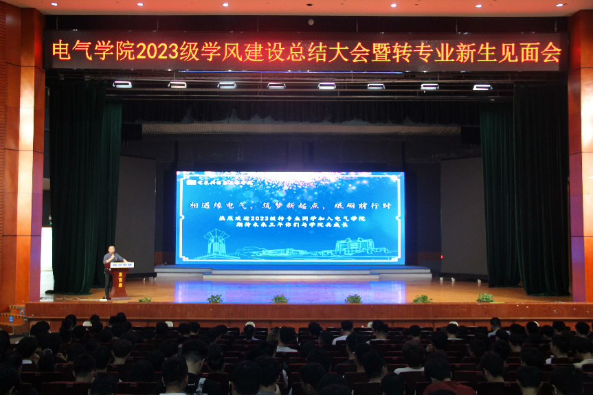 6月27日下午,电气学院在云塘校区大会堂开展23级学风建设总结大会暨转专业新生见面会。学院党委副书记周巍,22级辅导员吴佳骐,23级辅导员周珍、熊文娟及23级学生1000余人参加。