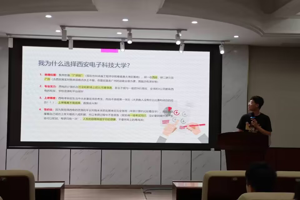 机电教改2001李家鑫就留学条件展开分享。他介绍自己的科创经历、实验室学习经历和整体的学习规划,并强调其对留学的重要性。机电教改2001舒航强调了院校选择的重要性,他在分享的过程中提到:“选择大于努力,喜好大于性价比,要选择自己喜欢的城市专业院校,并做综合考虑。”机电教改2001董亦鸣就备考技巧进行分享,他分享了备考数学、英语、政治和专业课的经验,同时提到了自己的备考经历,告诉同学们要找到自己的学习方法。土木教改2001王火麟跨专业考研成功,他谈道,跨专业考研需要付出更多的努力去学习新专业的知识,因此更要合理规划时间,重视数学与专业课的学习,及时总结,不要一味赶进度,为接下来的复习提供了切实可行的方案。机电教改2001刘立、潘峰和高航保研成功,共同提到了暑假训练营offer的准备工作和绩点在保研过程的重要性,并且保研一定要突出个人的优势,要有自己的闪光点。潘峰还提到要丰富自己的科创经历,在保研过程中一定要大胆尝试,主动联系导师。