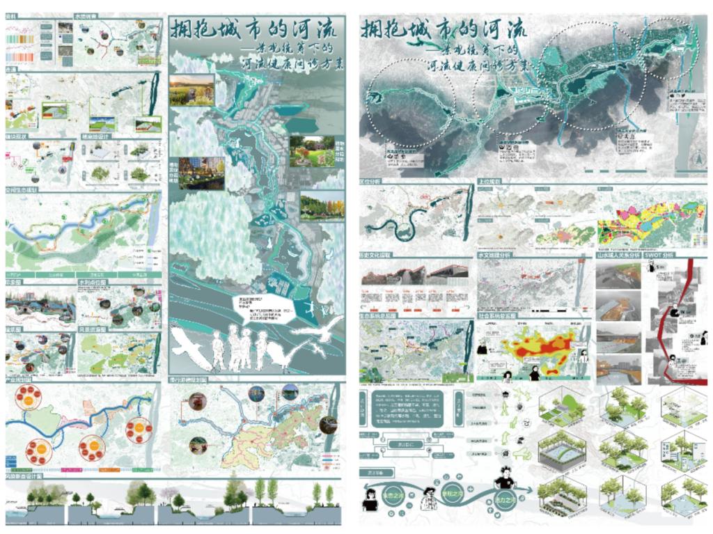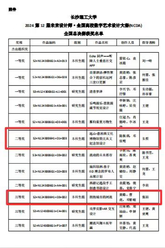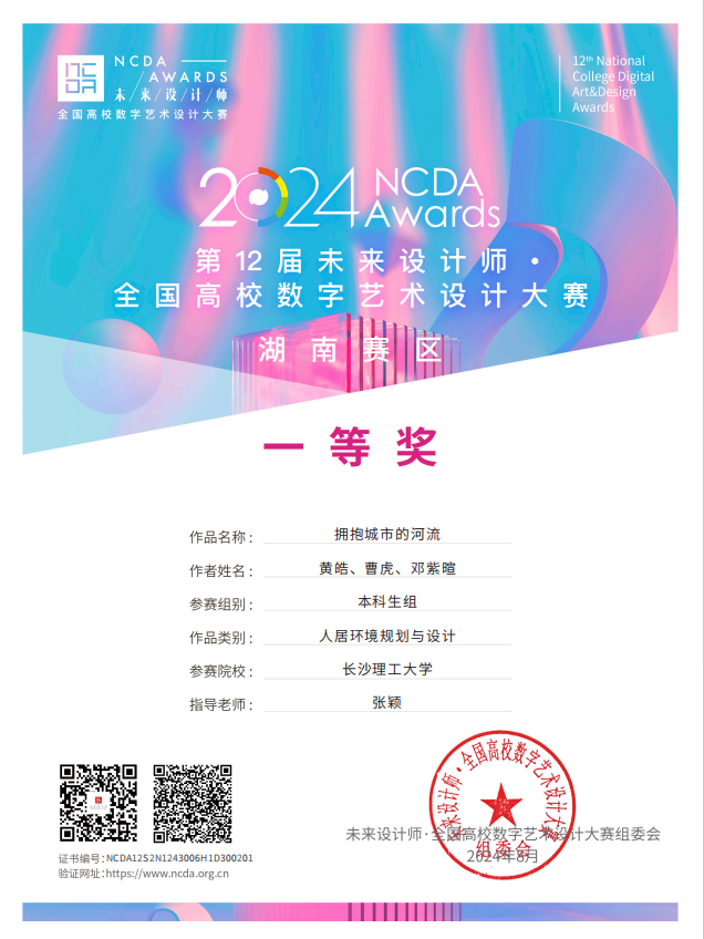 在全国总决赛的激烈角逐中,建筑学院的学子们凭借卓越的创意和扎实的专业技能,展现出非凡的风采,取得了令人瞩目的成绩。陈佩琪、邓依明同学在指导老师朱哲的精心指导下,其作品《远山——意湘西文化博物馆暨沈从文纪念馆设计》荣获二等奖,同时该作品在省级竞赛中荣获一等奖;黄皓、曹虎、邓紫暄同学在指导老师张颖的悉心指导下,作品《拥抱城市的河流》也荣获三等奖,在省级竞赛中斩获一等奖。