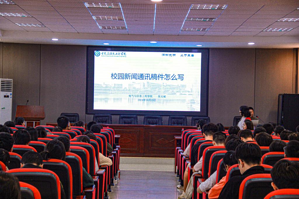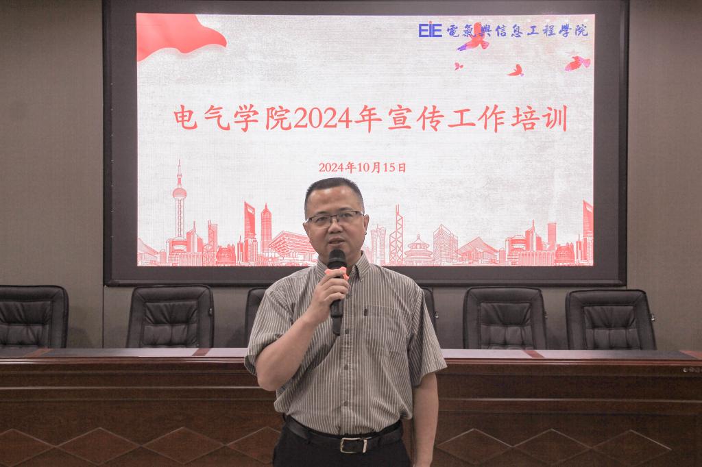 10月15日下午,电气学院2024年宣传工作培训在工科一号楼B503报告厅举行。院党委副书记周巍出席并讲话,学院组织员吴文斌应邀主讲,学院机关全体工作人员、学生干部及各年级团支部组织宣传委员共210余人参加。会议由分团委书记田孟萍主持。