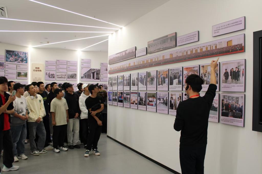 进入基地映入眼帘的是一幅宏伟的浮雕,同学们在讲解员带领下,依次走过“国之大者”“材之茂者”“师之贤者”“行之使者”四个篇章。这些篇章通过500余则(件)照片、视频、实物、模型等,生动呈现了湖南丰富的红色文化资源和学校在教育改革、探索前沿的创新性探索和突破性进展。