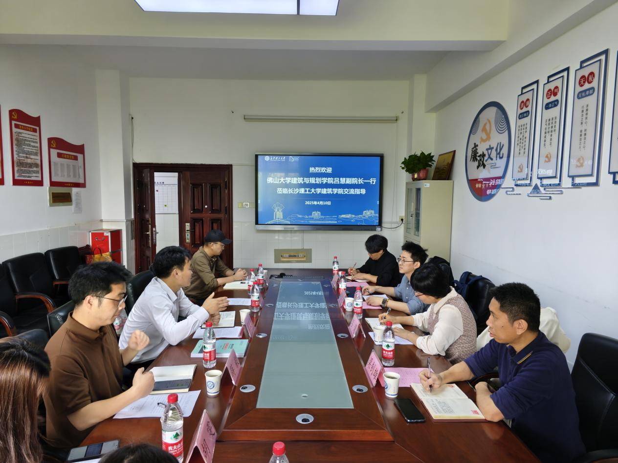 肖义慧对佛山大学建筑与规划学院副院长吕慧一行的到来表示热烈欢迎,并简要介绍了学院的基本情况、发展历程以及近年来的主要成就。他表示,近年来在学校的大力支持和学院全体师生的共同努力下,学院在人才培养、学科发展等方面取得了一定的成果。希望双方进一步深化交流合作,共同推动建筑教育事业迈向新的高度。吕慧对学院的发展成就给予了高度评价并对学院的精心组织表示衷心感谢。交流会上,双方聚焦专业建设、学科发展、实验室建设、人才培养方案修订等方面进行深入探讨。