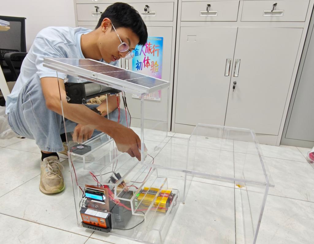 为了支持这一项目,学院指派三名专业教师对团队进行指导帮扶。经长期实践,团队设计出柔性光伏并网的自适应风幕环控系统,通过创新的绿电应用、算法自动分区控制以及温度湿度氧量等协同调节,实现地铁站环控系统的高效节能与精准调控。