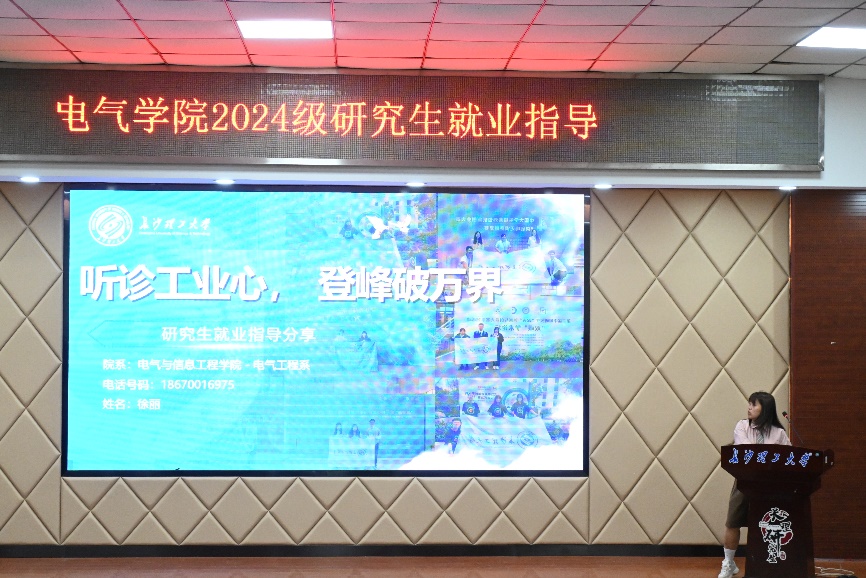 随后,两位优秀毕业生代表——研究生国家奖学金获得者刘国胜和卓越研究生奖学金获得者徐丽进行就业经验分享。签约长沙供电公司的刘国胜结合自身“科研竞赛+国网备考”经历,分享求职策略建议:简历需按岗位定制核心优势,备考注重理论与实操结合,面试前针对性研究单位业务重点。入职中车集团的徐丽以“校园大使+多段行业实习”经历为例,指出“与其追求广泛的荣誉积累,不如让专业研究与目标岗位的技术需求深度对接”,建议通过参与校企联合项目、企业实习等方式,积累与岗位直接相关的可量化成果,切实提升自身与企业需求的契合度。
