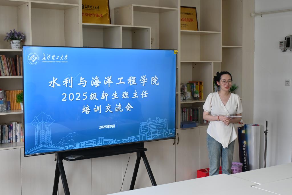 为提升新生班主任工作能力,确保迎新及后续班级管理工作顺利开展,9月9日水利学院在云塘校区新能源一栋二楼会议室召开了2025级新生班主任培训会。学工办杜丘、王正博、王祎以及全体新生班主任参会,会议由王祎主持。