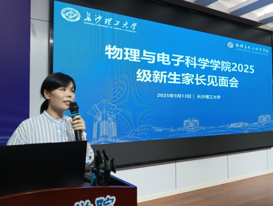 刘斯回顾了校院办学历程,重点介绍了学院学科体系、师资队伍、科研创新、人才培养及社会服务等,涵盖特色专业布局、育人平台搭建与校地服务成果。她指出,学院自1985年设立物理学专业以来不断发展壮大,目前学院已获批电子科学与技术、物理学两个一级学科博士点,学科实力雄厚。期待新生能够扎实掌握专业基础,在家校协同下成长成才。
