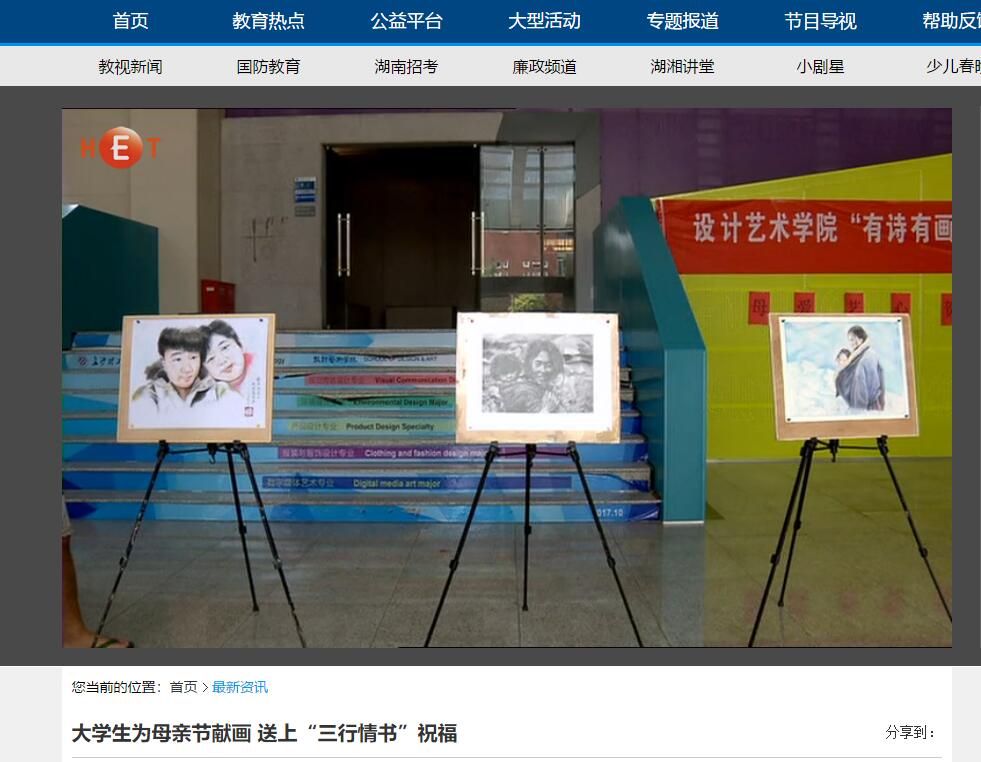 湖南教育电视台5月14日对伟德设计艺术学院组织的母亲节“三行情书”送祝福活动进行了宣传报到。经过两个星期的精心准备,设计艺术学院的学生为母亲献上了自己用心绘制的画作,并以“三行情书”的形式录制了祝福视频,向母亲表达了爱与祝福。近年来,设计艺术学院契合节日主题,将学生专业教育与弘扬中华传统文化和社会主义核心价值观教育相结合,开展了一系列积极向上的校园文化活动。