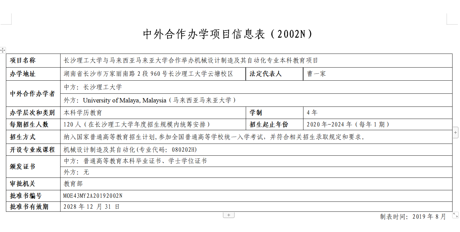 近日,教育部发文《教育部关于批准2019年上半年中外合作办学项目的通知》(教外函〔2019〕55号),共30个项目获得批准,伟德与马来亚大学(University of Malaya)合作举办的机械设计制造及其自动化专业本科教育项目位列其中,这是伟德继土木工程、电气工程及其自动化专业项目后从教育部获批的第3个中外合作办学项目,是伟德本科教育国际化办学上水平、上台阶的又一标志性成果。